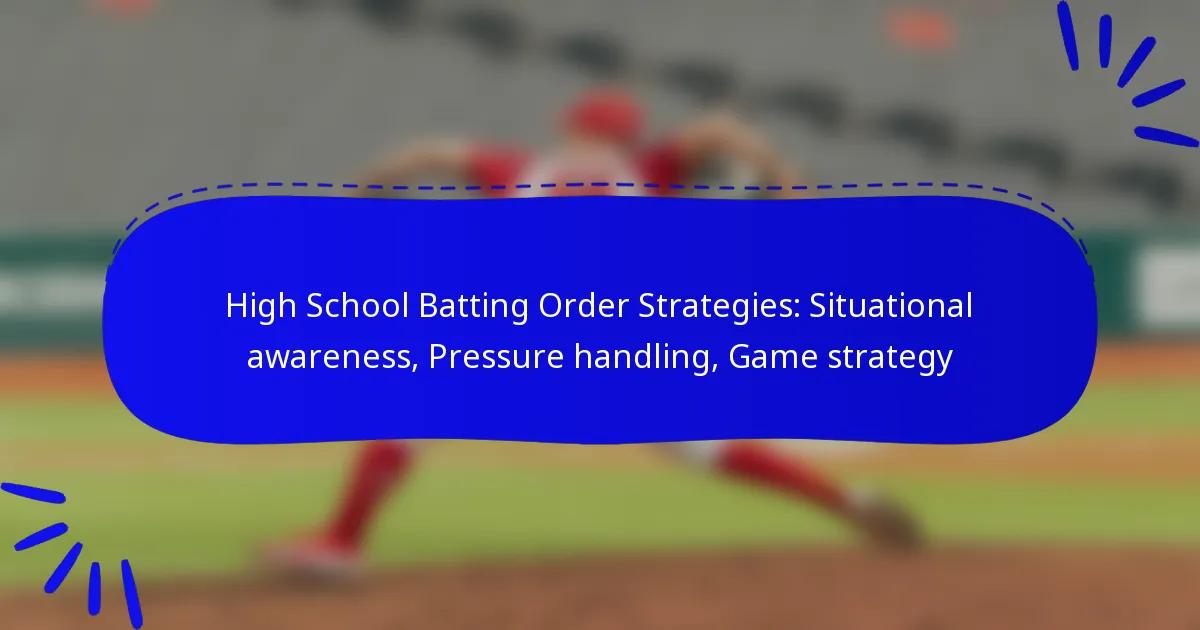 High school batting order strategies are essential for maximizing scoring opportunities by carefully arranging players based on their strengths and the game’s context. By focusing on situational awareness, coaches can adapt their strategies to factors like the score and opposing pitcher, ultimately enhancing team performance. Additionally, developing pressure handling skills through mental training and practice is vital for players to make effective decisions during critical moments in games.
